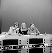 | 30 nov 2009 15:19 | 74333-7.png (bestand) | 407 kB | Panelleden Willem Nijholt, Elsje de Wijn en Rinus Ferdinandusse in Voor een briefkaart op de eerste rang. 1974. Zendgemachtigde KRO. Archief Beeld en Geluid. Catalogusnummer 74333, fotonummer 7. | 1 | |